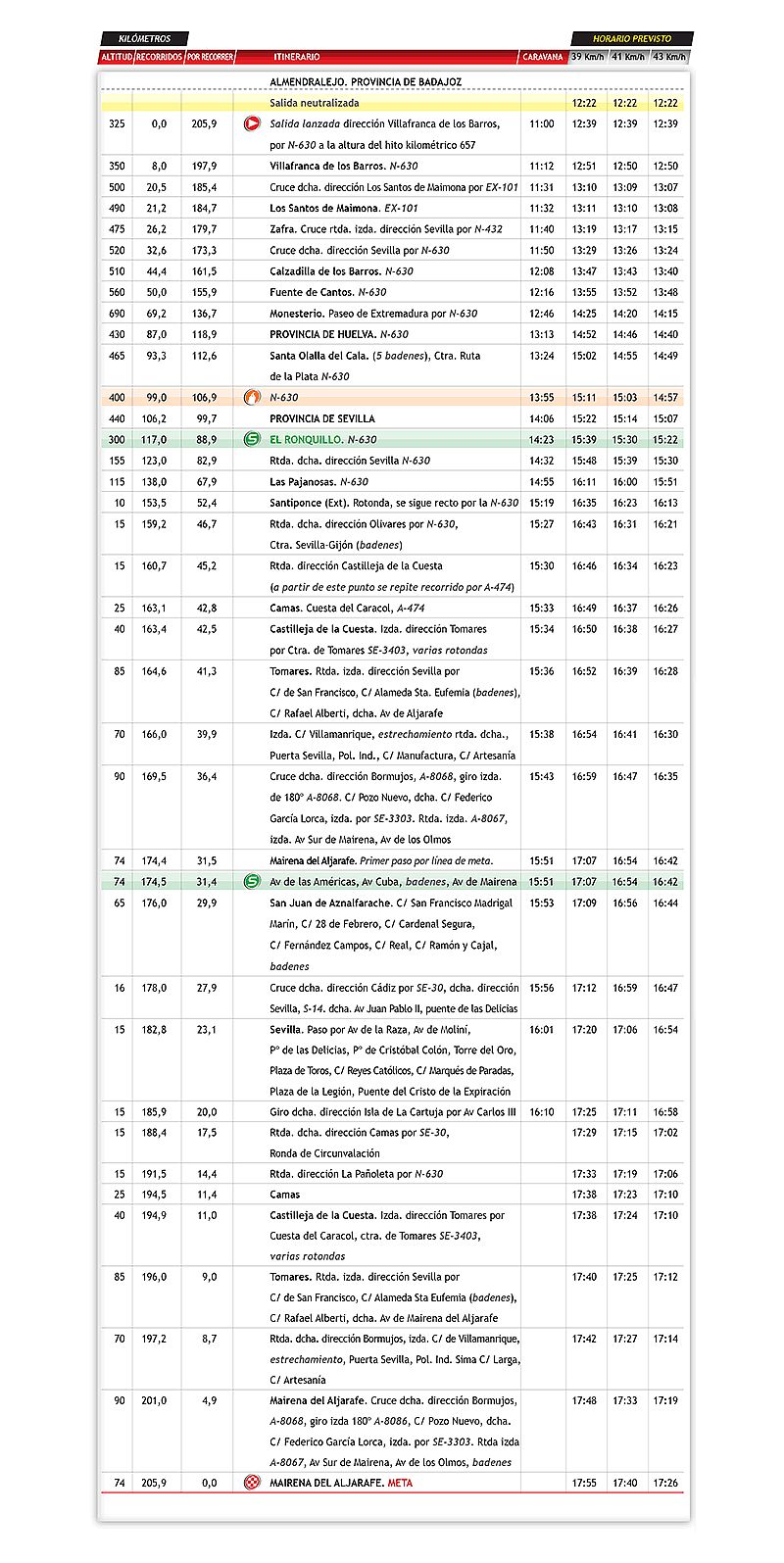 Actual race dates – my ride dates were 7 days earlier